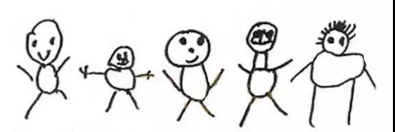 第二排小人是每天看电视超过3小时的孩子画的。画中的小人呆板僵化、细节简单。