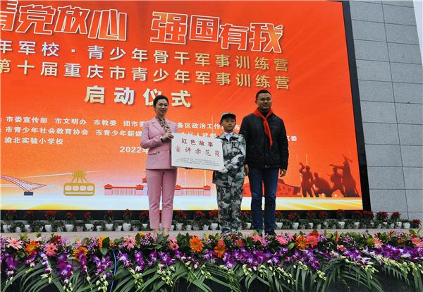 启动仪式在“小军人”们铿锵有力的《强军战歌》中拉开序幕。“小军人”展示了精彩的军事技能。营员代表李汶骏向全体参训“小军人”发出倡议,号召大家争做“学党史、强信念、跟党走”的新时代好少年。教官代表邱跃进行了岗前宣誓。参会领导为部分区县训练营带队教师授营旗,为教官代表授出征旗,向渝北实验小学授予“红色故事宣讲示范岗”称号,充分肯定学校在红色故事、党史知识宣讲中取得的成绩。