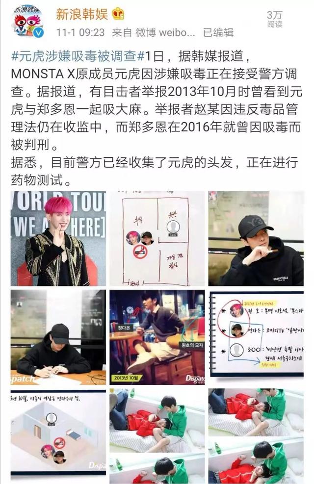 今年9月末,Monsta X在从德国演出后回韩国时,韩国警方在仁川国际机场等到元虎,提取了他的毛发。
