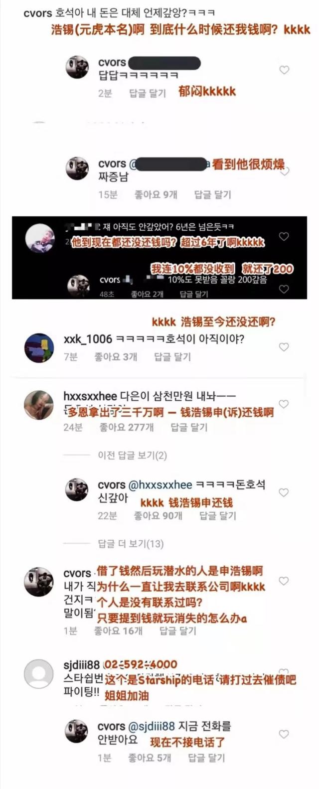 之后,郑多恩的绯闻女友韩瑞熙,韩国著名关种在郑多恩的Ins下评论说:“把多恩的三千万元还给她,浩锡快点还钱。”