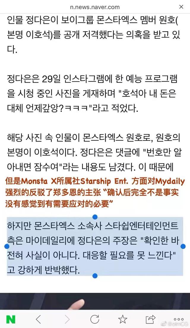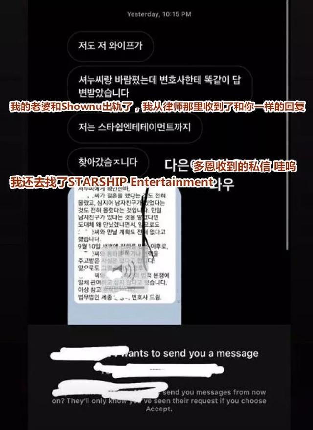 随后,韩瑞熙更是加码爆料,爆料MONSTA X另一位成员shownu与已婚女交往。