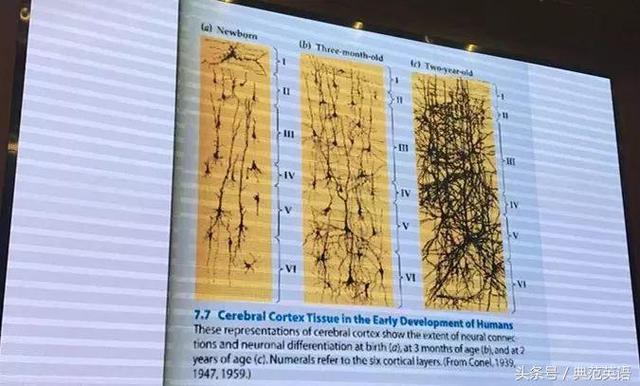左边是刚出生婴儿的大脑,中间是三个月,右边是两岁小孩的大脑神经连接