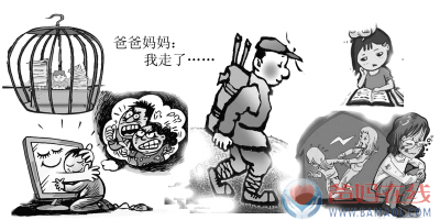 学习上有困难,对学习没有兴趣,是中学生离家出走的另一主要原因。学习是青少年的主要生活,其优劣又是决定他们在家庭和学校的地位、受赏罚的重要条件。离家出走的学生往往学习不好,不仅基础差,没有良好的学习习惯和正确的学习方法,而且缺乏刻苦学习的精神,普遍厌学,造成这种情况的原因很多,除了他们原来基础就较差以外,另一个主要原因就是教师的教学激不起他们对学习的兴趣,又由于中学课程的增多,学习成了他们沉重的负担。他们往往认为学习太苦了,是出力不讨好的差事,是招家长打骂、老师批评、同学看不起的根源。正如有的学生说的:“听又听不懂,坐在教室里真受罪,不如到外面玩几天,回来顶多被家长训一顿,反正学习不好也经常挨训。”因此,离家出走就成了他们逃避学习的一种手段。家长、教师都应该帮助学生端正学习态度、改进学习方法。家长也要根据学生的实际情况提要求,不能勉强孩子或提出一些自己的孩子不可能达到的目标。教师要对学生进行经常性的学法指导,激发他们学习的兴趣,使他们由厌学变乐学,教师还要从学生实际出发,区别对待,因材施教,分层教学,帮助学生补齐知识的欠缺,逐步提高成绩,树立起学好功课的信心。学校还应努力丰富校园生活,搞好课外活动,使每个学生都有自己的兴趣爱好,每个学生在学校都有表现自己才能的天地,使他们感到学校可亲可爱,让学校产生一种吸引力和凝聚力,使学生不愿意离开学校这个集体。