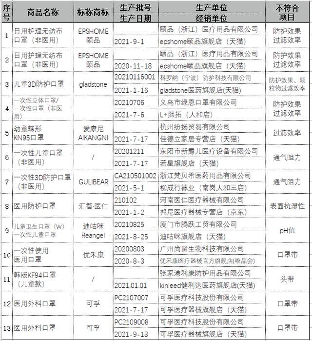 “可孚”“颐品”“优禾康”等未达标