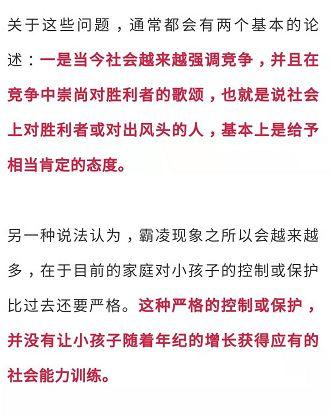 霸凌者就其个性而言,大多比较喜欢欺负人、蛮横,或有较强的控制欲,通过霸凌别人能得到尊重,会使他们更加变本加厉。而有的霸凌者则通过霸凌获得自我存在感,这类人通常是“受虐”和“施虐”的综合体,在家庭等大环境中他们存在感很低,也遭受欺负,服从权威,通过学习和模仿,他们会寻找途径将自己的痛苦转移到别人身上,以此宣泄释放或获得关怀。