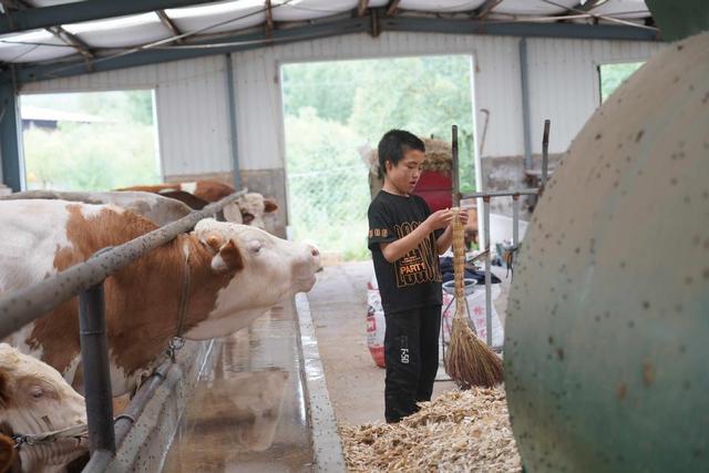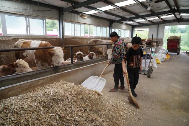 她摸着郑磊的头安抚着:“只要磊磊好好的,姑姑就开心,咱们磊磊是个好孩子,将来有大出息,姑姑还等着看你出人头地呢。”(图为郑磊帮助姑姑打扫牛棚)