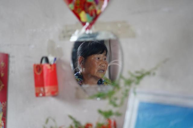 长期的睡眠不足和劳累让郑玉霞不断地掉头发,郑玉霞脸上已经饱经风霜,布满皱纹,60岁的年龄俨然活成了七十多岁的样子。在她的生活里,她只有不停地忙碌多这些钱才能让家人不忍饥挨饿,才能过上跟别人一样的生活。(图为郑玉霞满是沧桑)