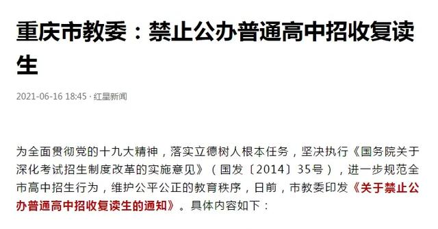 比如,贵州、四川、云南等地区的教育部门都相继发布了规定,要求公办高中全面停止招收复读生、借读生、插班生。
