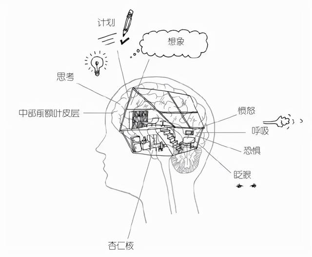 而下层脑负责高级逻辑思考、控制情绪、自我认识、共情等。