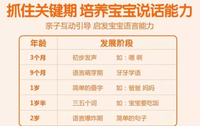 说话是一个循序渐进的过程:由牙牙学语,到叠字,到三五个词,再到完整的句子,能用多种词汇表达意愿。
