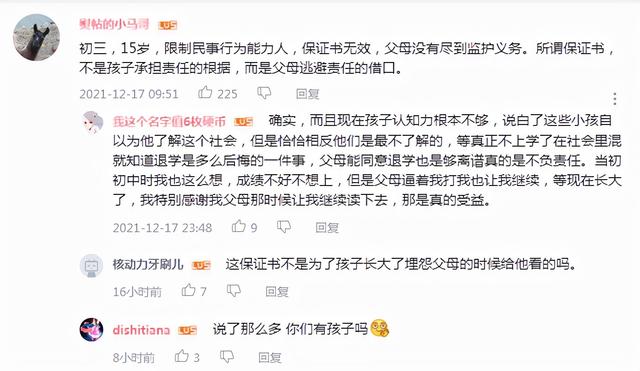 有的网友说,初三,限制民事行为能力人,书无效,父母没有尽到监护义务。所谓书,不是孩子承担责任的根据,而是父母逃避责任的借口。