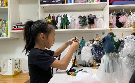 比如她喜欢服装设计,我们就给她买剪刀、买布、买热熔胶,买各种各样的材料。