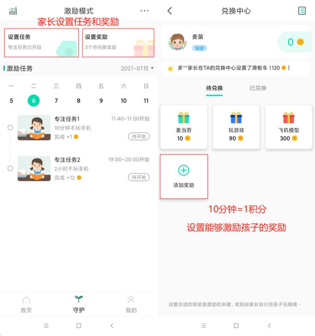 关于规则的精准落地,家长可以使用麦苗守护限制具体的时长,孩子不能耍赖超时娱乐。
