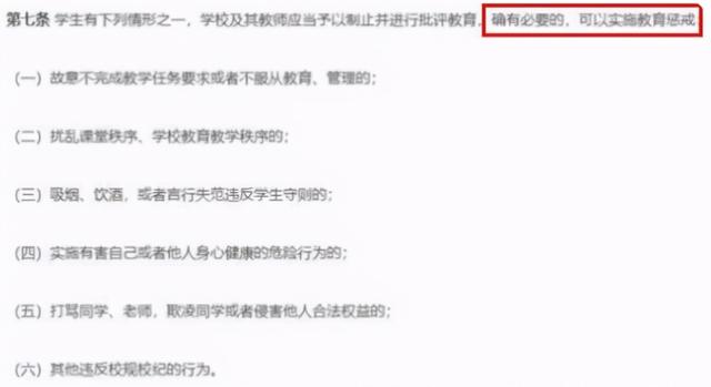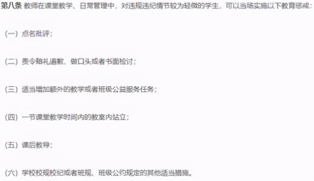 前不久,教育部下发了有关中小学生教育惩戒规则,主要针对老师管理学生问题,做出进一步规范,明确列举出学生的哪些行为,老师需要及时管教,哪些行为需要联系家长,或者上报院方等待处理,而老师对于不听话学生,主要还是口头批评警告,或者课后教导等方式。