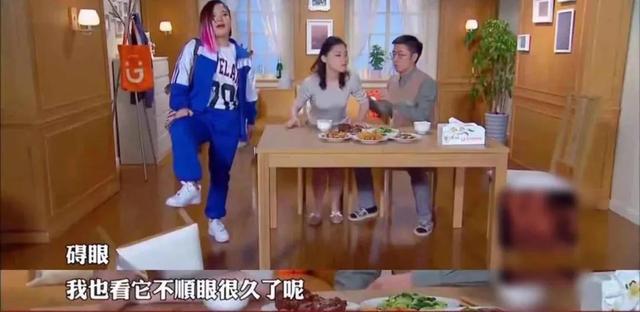 女儿踹开大门,晃着身子,一边踩着椅子抖着腿,一边捋着凤尾刘海,大喊“碍眼”。