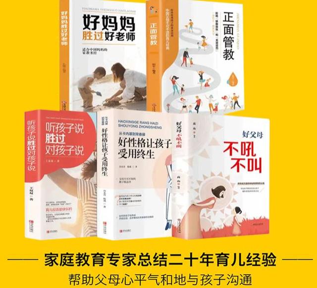 这套书一共有5册:《好父母不吼不叫》、《正面管教》、《好妈妈胜过好老师》、《好性格让孩子受益终生》、《听孩子说胜过对孩子说》;